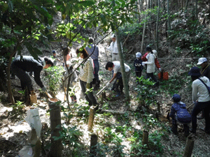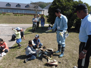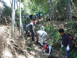 竹の生態について学んだ後、いよいよタケノコ掘りに出発!!