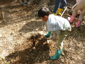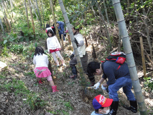 うまく掘れるコツを教えてもらって、みんなでタケノコ掘りに挑戦したよ♪
