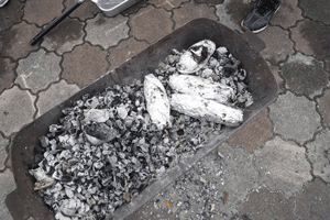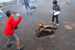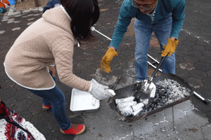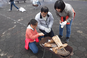 落ち葉や焚き木を集めて焼いもに挑戦したよ。
