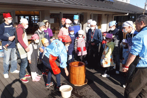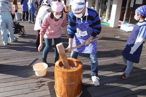 昔ながらの臼と杵で、おもちつきをしたよ!