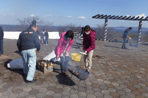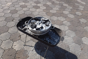 燃料は炭と焚き木。ダッチオーブンを使って「香ばしいピザ」やデザートの「あま〜いコブラー」を調理しました。