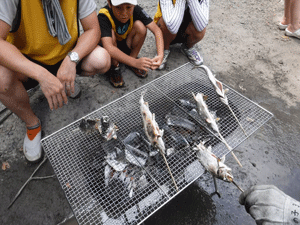 自分で捕ったヤマメは塩焼きにしていただきました!