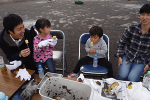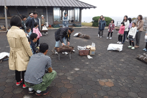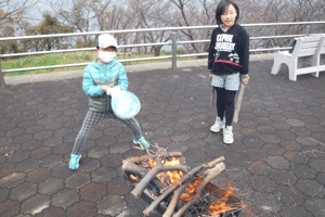 落ち葉や焚き木を集めて焼いもに挑戦したよ。