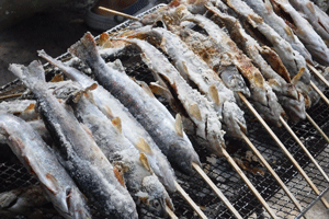 自分で捕ったヤマメは塩焼きにしていただきました!