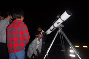 はじめにお月様の学習をした後、スコープや天体望遠鏡・双眼鏡などを使って秋の夜空を観察したよ!