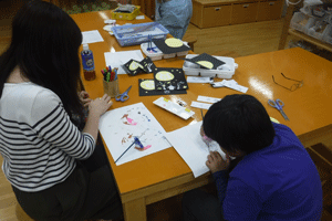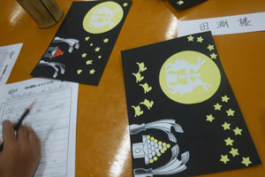 最後はみんなでお月見の切り絵を作りました。