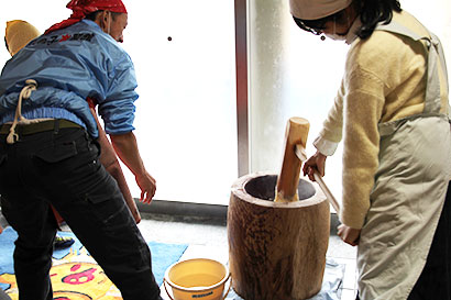 昔ながらの臼と杵で、おもちつきをしたよ!