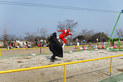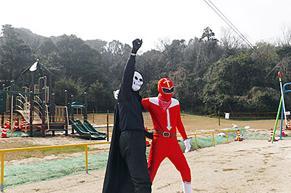 記念イベントとして人気の「たきレンジャー」が登場!悪者を倒してくれたよ。