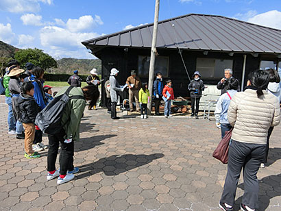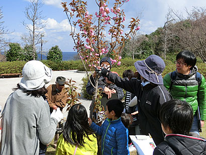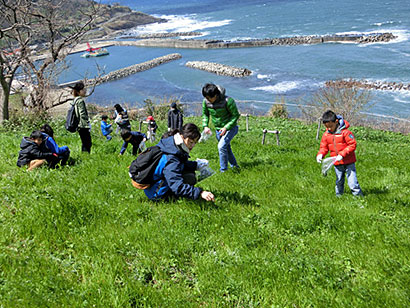 自然観察ゲームをしながら、海の見える「眺海の丘」まで登ったよ。