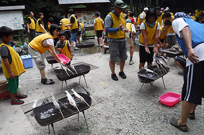 自分で捕ったヤマメは、自分たちでさばいて塩焼きにしていただきました!