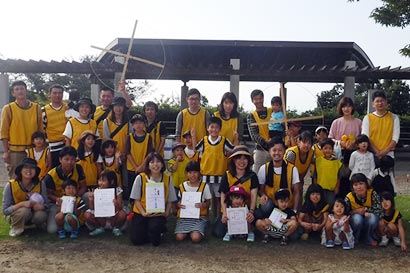 巨大竹とんぼ飛ばし体験では、たくさんの参加者で滞空時間を競ったよ!とても盛り上がりました!