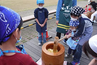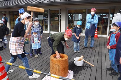 杵でつくのはとっても大変だったけど、みんなで力を合わせてがんばりました!