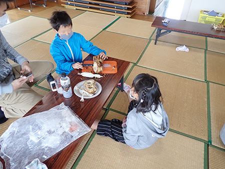 竹をまわしてバームクーヘンを作ったよ!