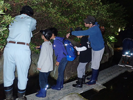 公園内の池で産卵時期を迎えたモリアオガエルを見つけて生き物のふしぎにふれてみませんか。